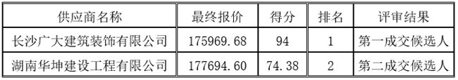 成交供应商名称: 长沙广大建筑装饰有限公司